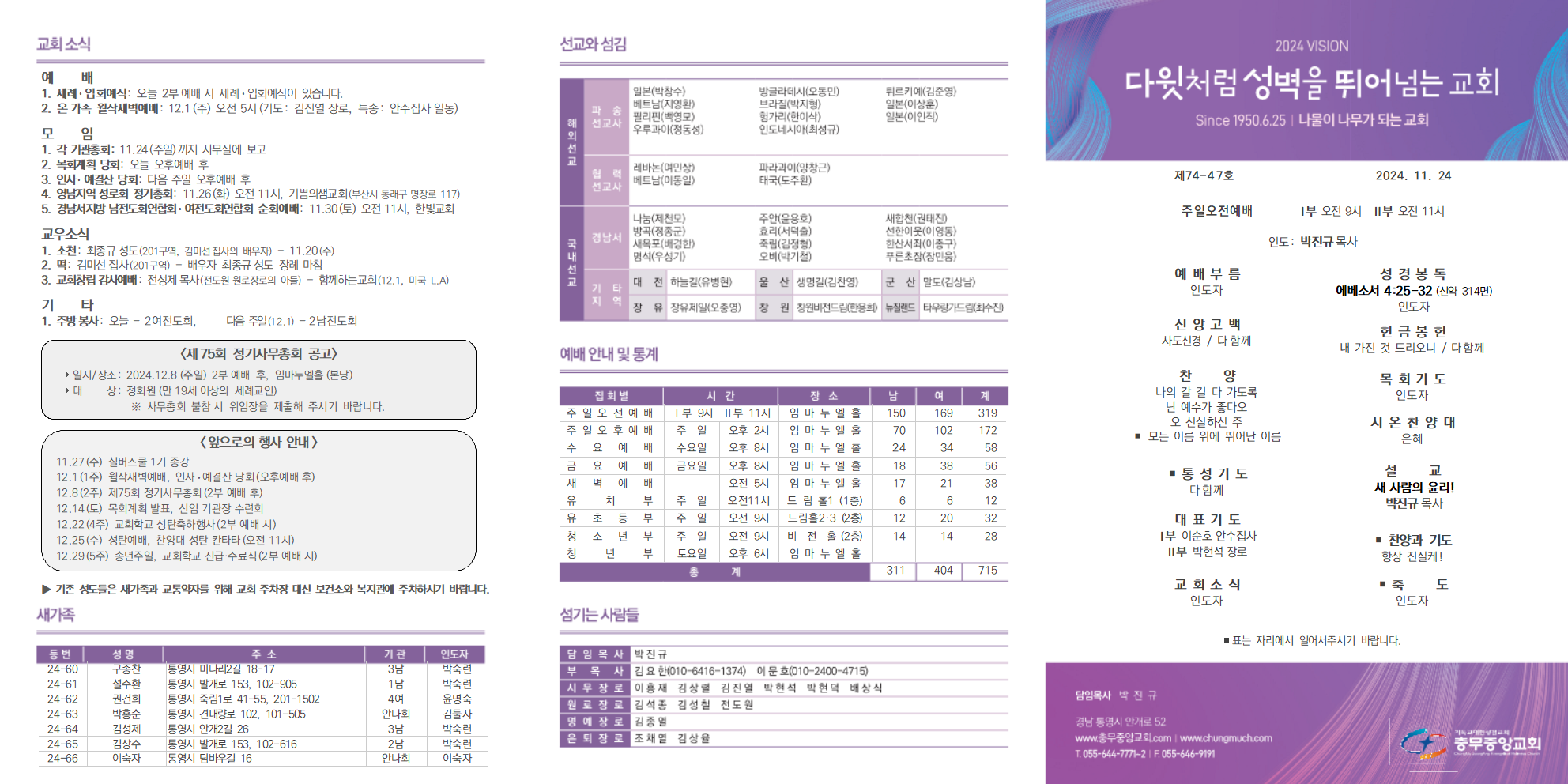 | 520 | 12월 01일 교회소식 | 관리맨 | 2024.12.01 | 276 |