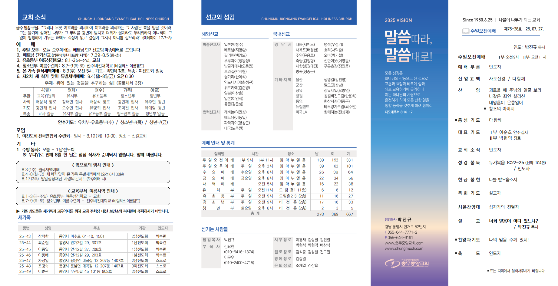 | 586 | 07월 20일 교회소식 | 관리맨 | 2025.07.20 | 115 |