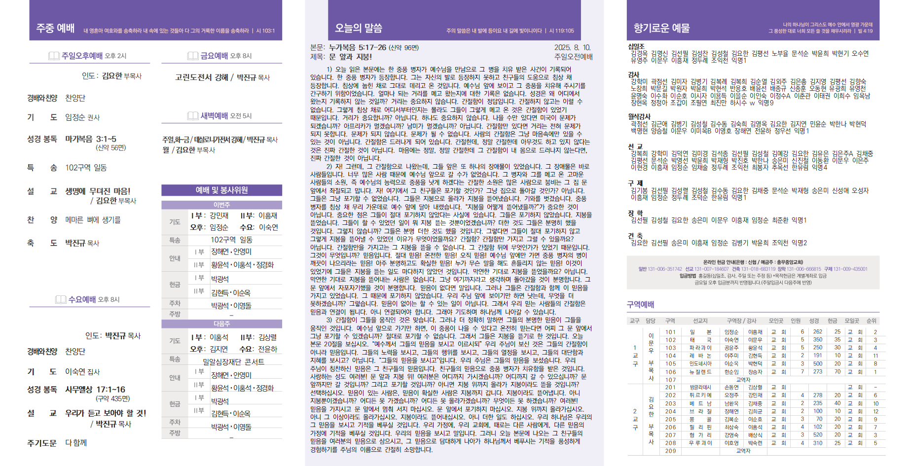 | 594 | 08월 17일 교회소식 | 관리맨 | 2025.08.17 | 115 |