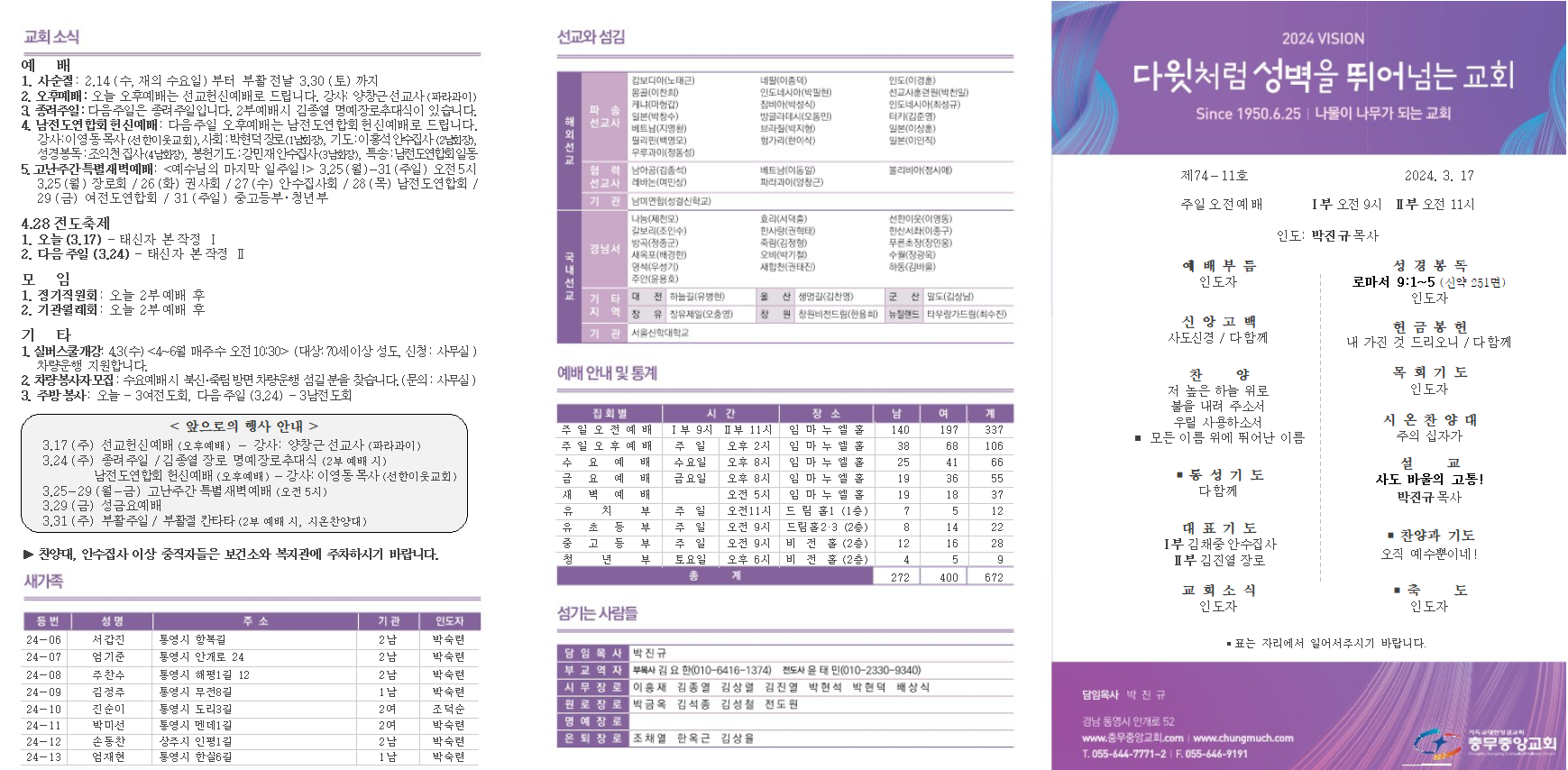 03월 24일 교회소식