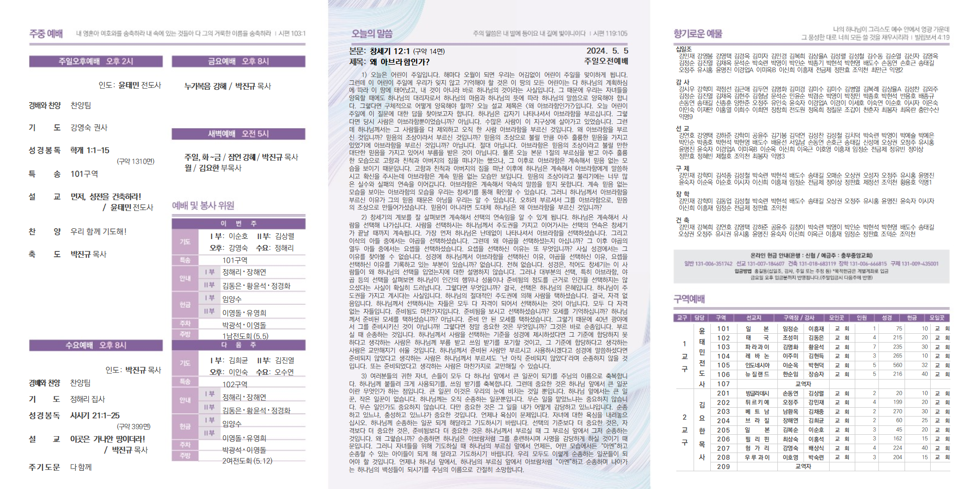 | 462 | 05월 12일 교회소식 | 관리맨 | 2024.05.12 | 417 |