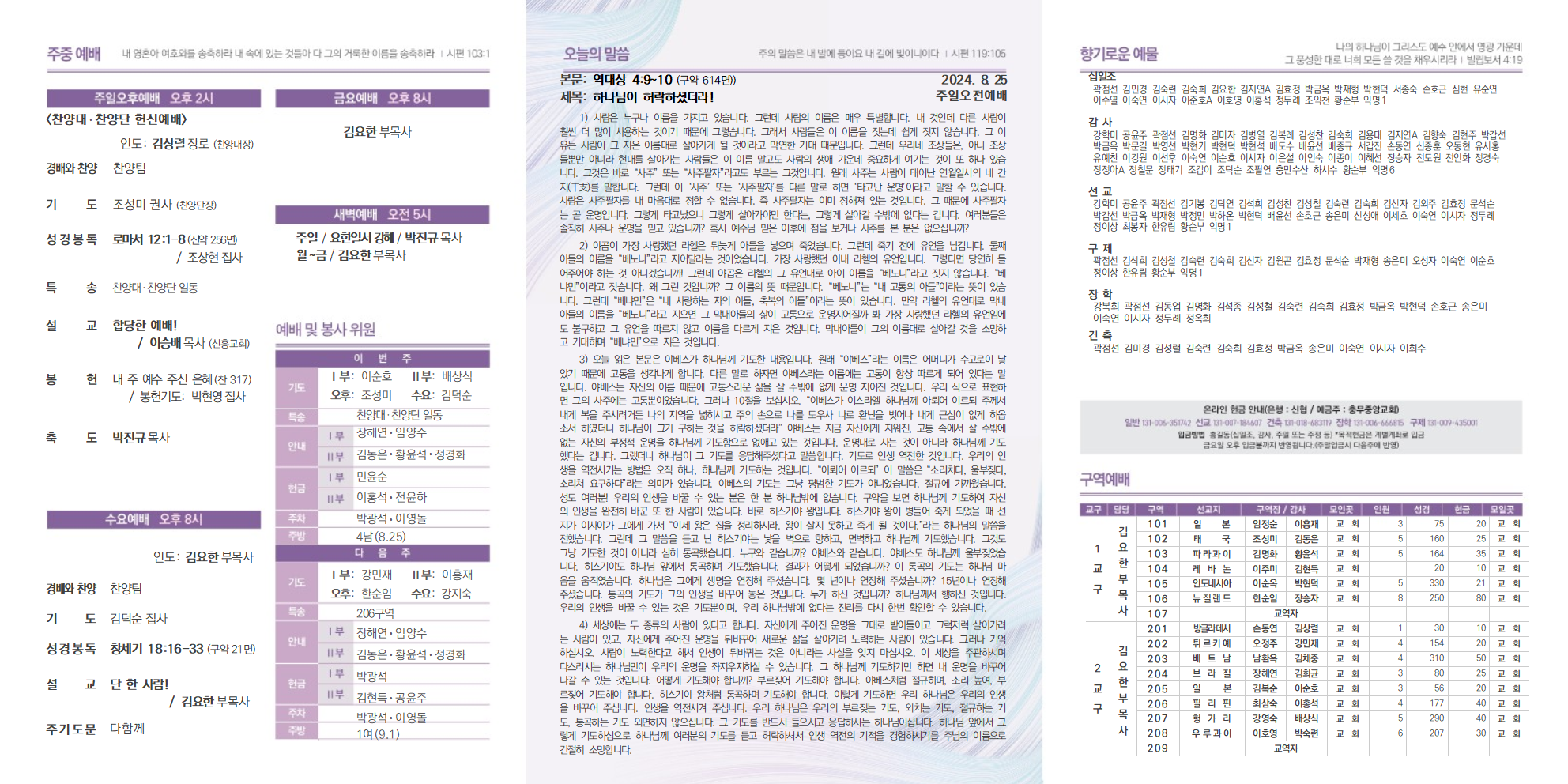 | 498 | 09월 15일 교회소식 | 관리맨 | 2024.09.15 | 299 |